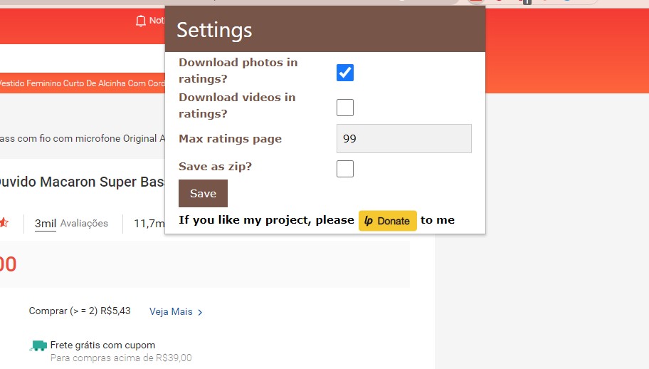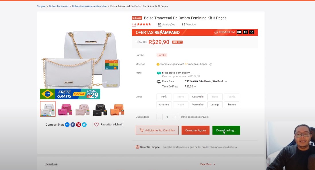 Passo 4. Depois de ter instalado a extensão, agora, vamos acessar o site da Shopee e escolher um produto. Observe que abaixo do anúncio é exibido um botão de Download
